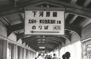 国分寺駅の跨線橋を下りた4番5番線が下河原線のホームで、にぎやかな中央線と比べると閑散としていました。