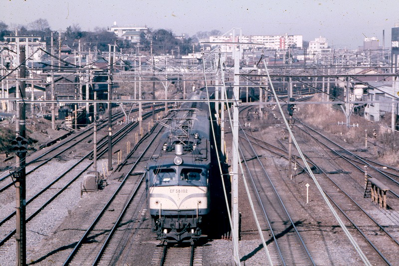 首都圏ではEF15が貨物列車を引いていました。EF58牽引の急行列車や荷物列車が普通に見られた時代でした。
