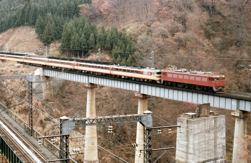 起点の福島駅から米沢駅までの区間には難所として知られる板谷峠があり、EF16、EF64、EF71などが補機として使われた。 ここでは、奥羽本線全線電化完成前後の特急列車を中心に見ていきたい。