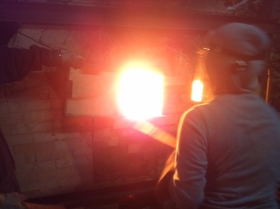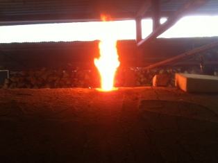 1200℃を超えたらもうひとがんばり。ガンガン薪をくべます。