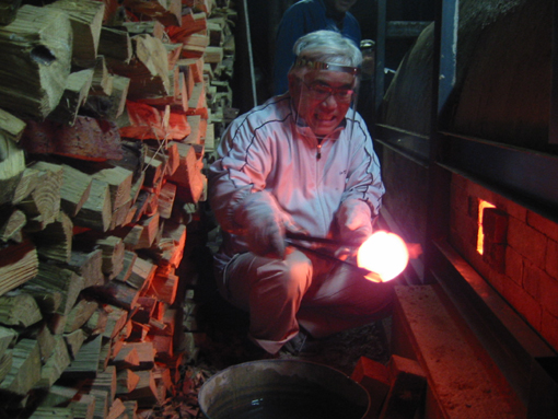 ご主人と一緒に窯の番。