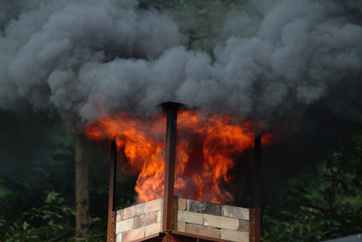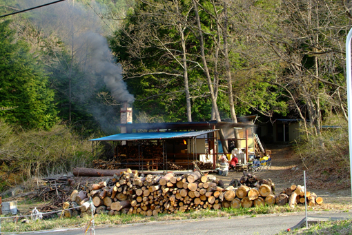 松は油分が多く、煙突から出る煙は真っ黒です。