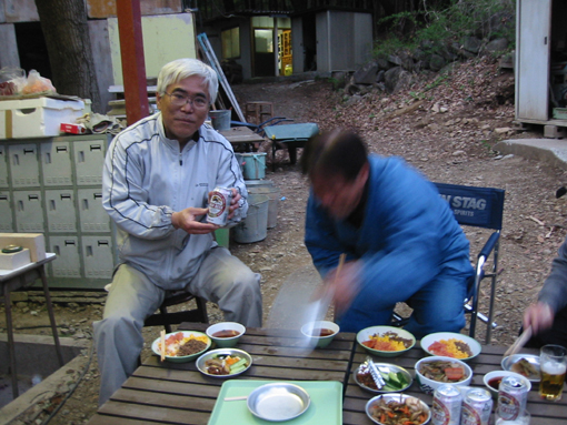 窯出し後の食事会。おいしい料理は早いもの勝ちです。