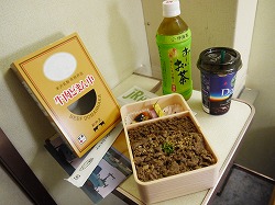 上野駅で買った駅弁で夕飯。寝台車で食べると何でもおいしく感じます。