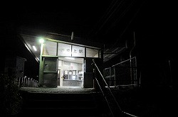 旅館から近いので、夜道を出かけました。国道2号線に面していて、市街からは歩道橋のような階段を上った所にあります。片上鉄道が現役の頃は、片上駅まで5分ほどだったようです。