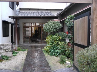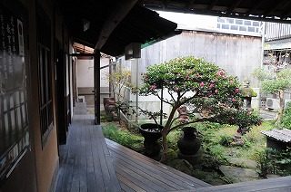 中庭にもさりげなく備前焼が置かれています。100年以上の歴史をもつ建物、手入れが行き届き、よく磨かれていてとっても風情があります。