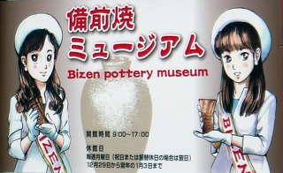 美術館の外には「備前焼小町」の大きな看板が。ハルカちゃんが小町をしたのはいつだったのか。