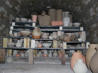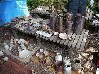 左奥の壺は、先日行った伊賀焼伝統産業館に展示されていた壺と同じ割れ方をしています。