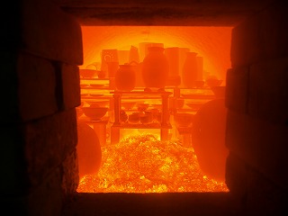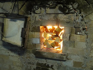 窯焚き再開。温度は順調に上がっています。
