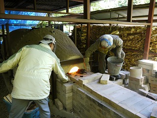なかなか温度が上がらないので、しばらく休んで出直すことにしました。1100℃くらいまで下がったところです。赤く輝いてきれいです。