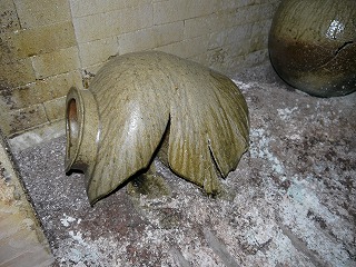 Mさんの壺が…薪窯では時々こんなことがあります。この壺はとても薄い部分があり、そこから割れたようです。焼きはとってもいいんですけど。