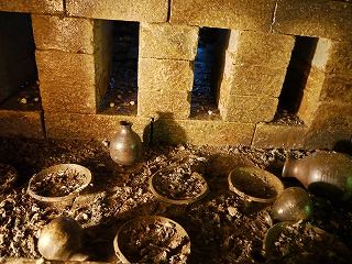 火床には壺が大小4個。壺の陰に転がしの作品が4つあります。