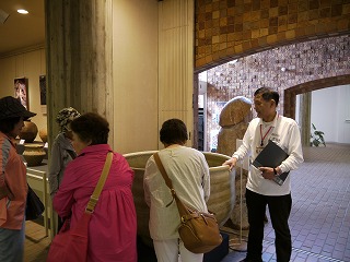 ガイドさんの案内でまずは館内を見学しました。これは風呂桶より大きな「茶碗」です。