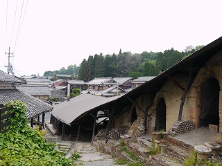 阪神淡路大震災まで現役だった登り窯。幅も広く、10以上の部屋がありました。