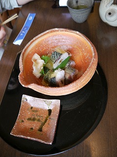 お昼はサバずし。5人それぞれみんな違った器が使われていました。