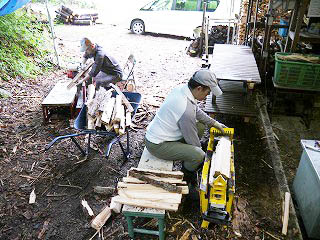 作業の人数が多いときは、2台の薪割り機を使って効率よく作業ができます。