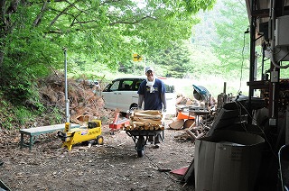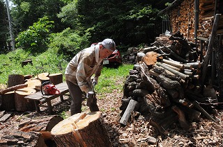 Kさんは、食事が終わるとすぐに薪割りを始めました。