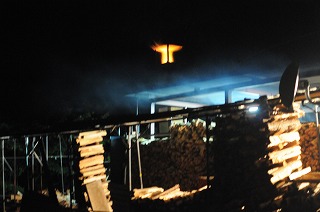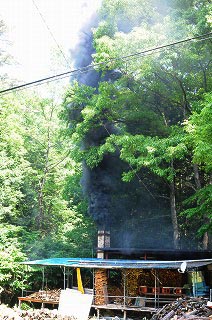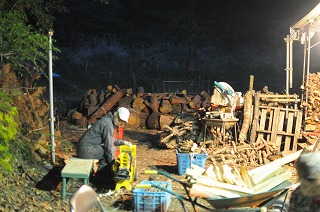2日目の明け方からはOさんが当番です。この段階では雑木やC級の松を使いますが、順調に温度が上がっていきます。