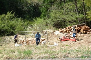 あるゴルフ場から赤松をいただけることになり、まだ窯もできないうちから薪づくりを始めました。