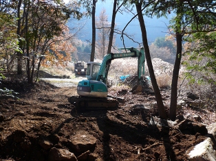 飯田様が重機で現場を整地してくださいました。窯や小屋、薪置き場などをつくる場所ができました。