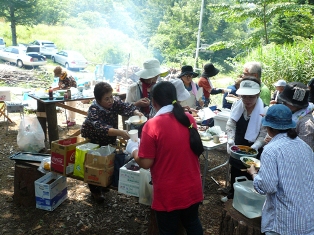 たくさんの方たちに窯の建築現場を見ていただくため、薪割り、薪運び、バーベキューをしました。