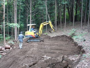 清水様が重機で作業場兼休憩室の建設地を整地してくださいました。