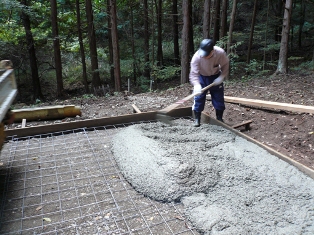 作業場兼休憩室の基礎コンクリートを打ちました。人数が少なすぎて無謀な作業でした。